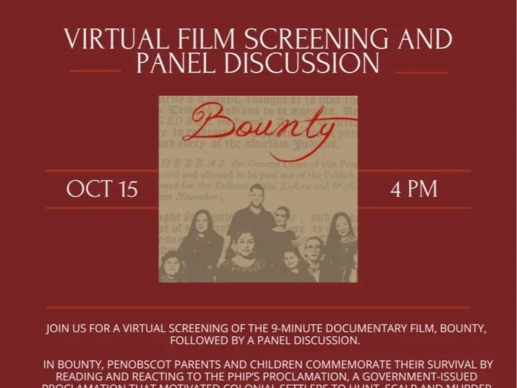 9-minute film takes place in the Old Boston State House. Film shows children's poignant reactions as their Penobscot parents/grandparents tell them in real time of the US genocidal policy placing bounties on the scalps of their ancestors. View here.